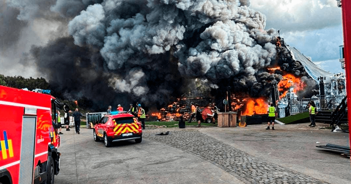 Un gran incendio se desató en el escenario principal del festival Tomorrowland, en Boom, Bélgica, y los bomberos luchan contra las llamas.