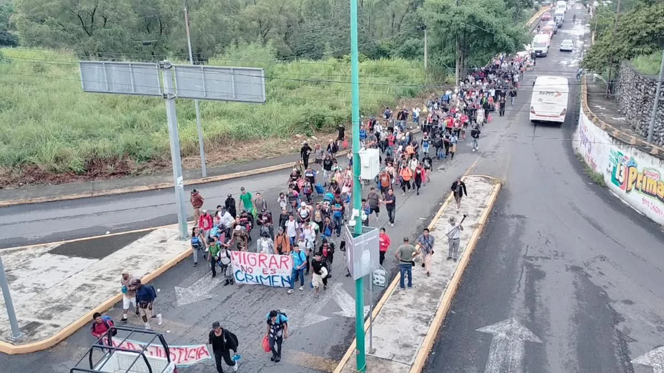 Unos 300 migrantes partieron en caravana desde Chiapas rumbo a la CDMX, bajo la consigna de que “migrar no es un crimen”.